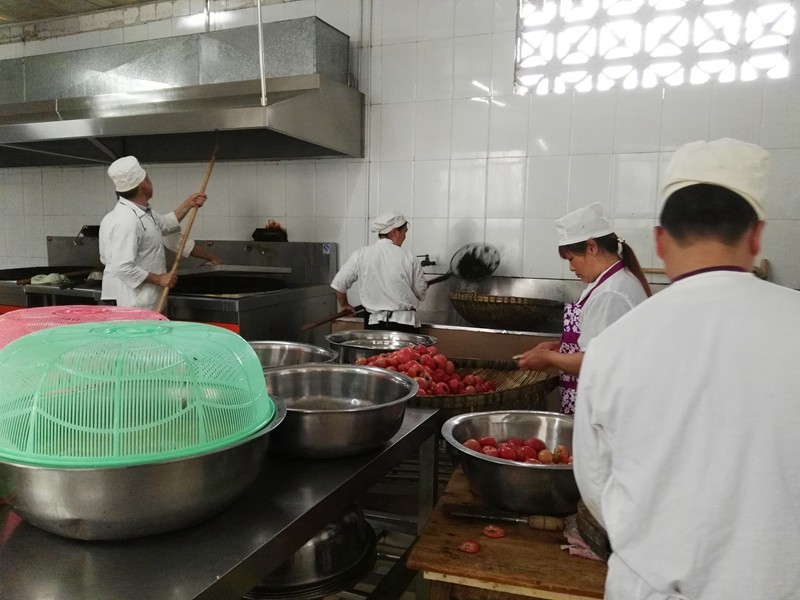 一是堅持每周星期五下午對餐廳進(jìn)行大掃除,洗拆抽油煙機(jī)、餐廳玻璃,清洗地面、水槽等,后勤員工有序工作一絲不茍。