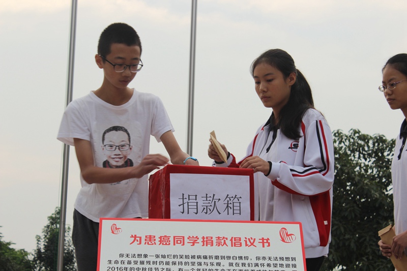2016年9月12日,周一朝會(huì),更生學(xué)校團(tuán)委、學(xué)生會(huì)向全校師生發(fā)出倡議,為我校高2018屆5班學(xué)生罹患淋巴癌的曹凈同學(xué)進(jìn)行愛心捐款。短短一天時(shí)間共募集愛心捐款43940元。9月13日下午,學(xué)校領(lǐng)導(dǎo),高二年級(jí)師生代表來(lái)到曹凈同學(xué)家中,將這份代表更生這個(gè)大家庭的愛心交到了曹凈同學(xué)的父母手中。