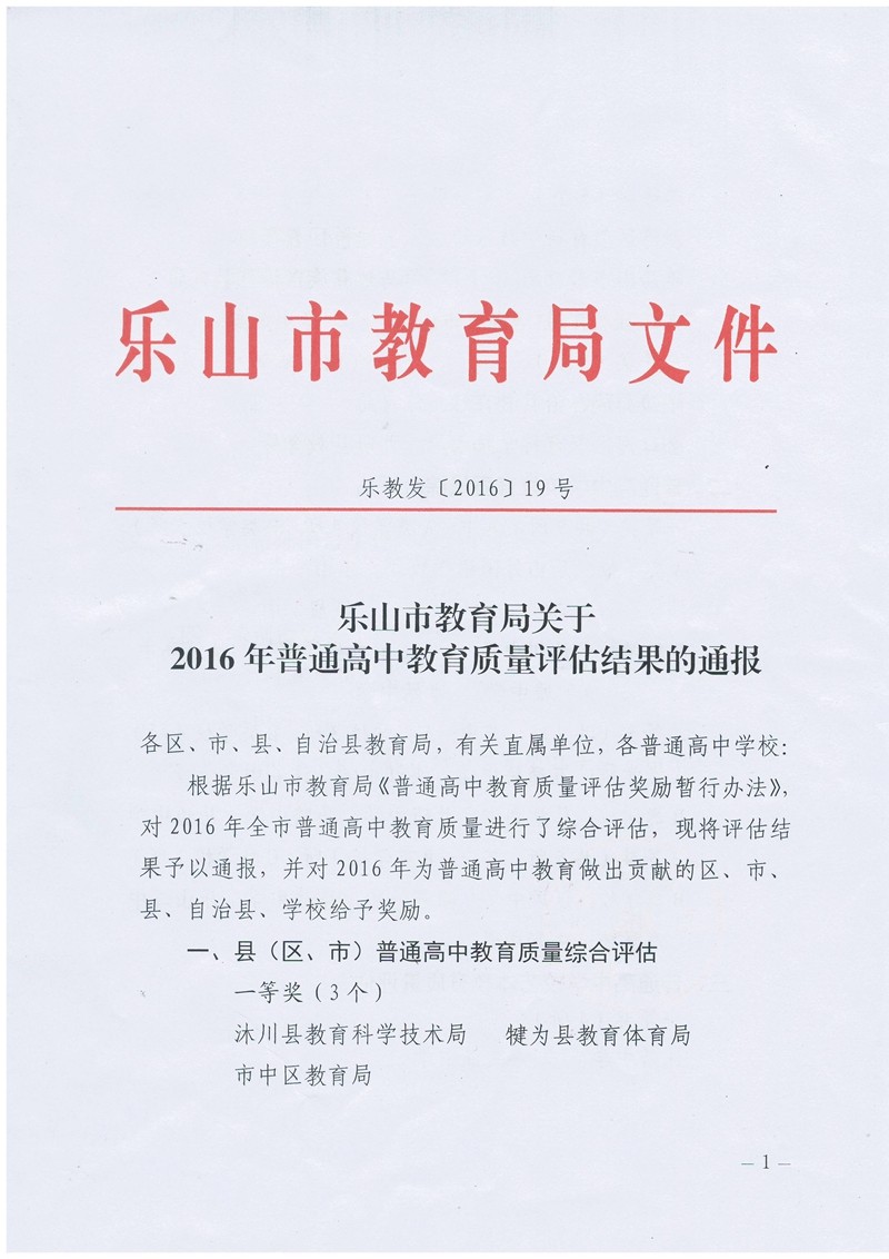 2016年11月10日-11日,樂山市教育局在沐川召開了全市高中高中教育工作會,更生學(xué)校以總分120分又獲高中教育質(zhì)量評估一等獎。這是更生學(xué)校連續(xù)第四年獲市教育局高中教育質(zhì)量綜合評估一等獎。今年市上首次對藝體生雙上線情況進(jìn)行評估,更生學(xué)校獲二等獎。多年來更生學(xué)校堅持以質(zhì)量求生存,以特色求發(fā)展,一心一意抓質(zhì)量,抓校風(fēng)建設(shè),學(xué)校教風(fēng)學(xué)風(fēng)優(yōu)良,教育教學(xué)質(zhì)量屢創(chuàng)佳績。