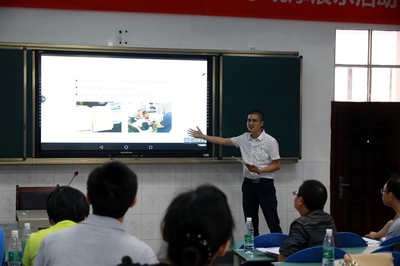 交流課后阮平校長(zhǎng)發(fā)言,他說(shuō)互聯(lián)網(wǎng)快速發(fā)展,科技改變?nèi)祟惿?,我們必須跟上信息化社?huì)的步伐,利用互聯(lián)網(wǎng)+教育讓教學(xué)質(zhì)量更上臺(tái)階。接下來(lái)教導(dǎo)處王德輝老師就更生學(xué)校智慧課堂開(kāi)展的情況及有關(guān)技術(shù)方面向來(lái)賓進(jìn)行了介紹。