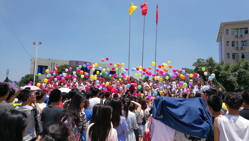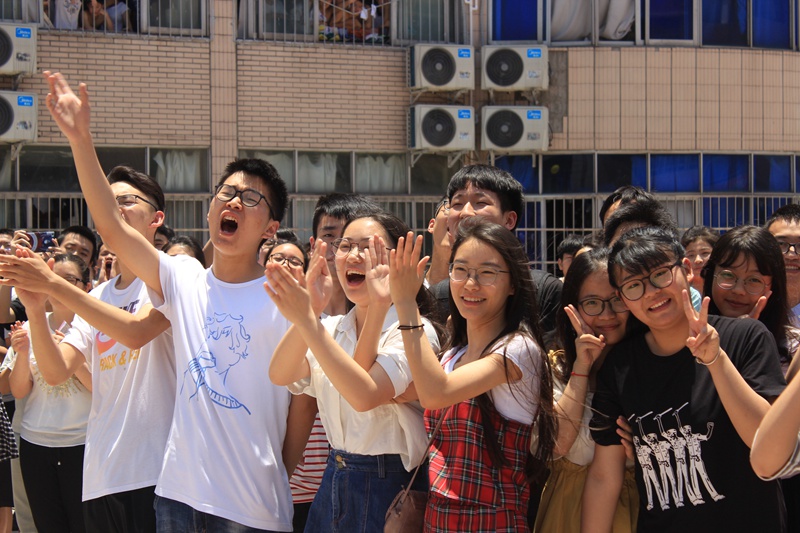 壯行儀式上,學(xué)校全體行政領(lǐng)導(dǎo),高三全體班主任老師以及小學(xué)、初中學(xué)生代表手持彩色氣球?yàn)楦呷龑W(xué)生加油,他們齊聲高呼“旗開(kāi)得勝,馬到成功,高三加油,高考必勝”,聲音如虹,貫徹長(zhǎng)空。這加油聲感染了每一位在場(chǎng)的高三同學(xué),激發(fā)了他們滿腔熱血迎戰(zhàn)高考的勇氣與力量。