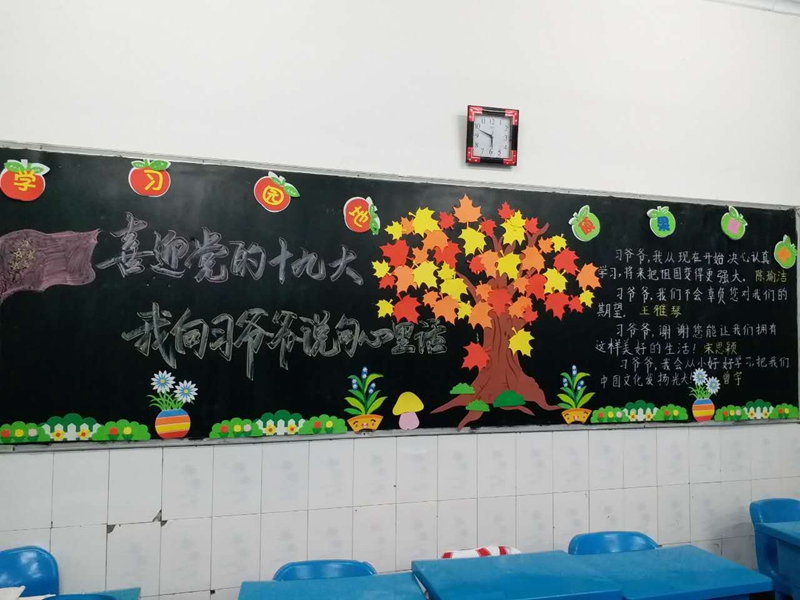 的黨中央對少年兒童的親切關懷和殷切希望,宣傳黨的十八大以來黨和國家事業(yè)的繁榮發(fā)展,鼓勵少先隊員圍繞“喜迎黨的十九大”主題自主表達純真的情感和真實的心聲。在9月30日下午各中隊開展了《向習爺爺說出了心里話》的主題活動:有的隊員在黑板報上這樣說到:習爺爺,我從現(xiàn)在開始決心認真學習,將來把祖國建設得更強大;有的同學在手抄報上這樣說:習爺爺,謝謝您能讓我們擁有這樣美好的生活;還有的小朋友以兒童畫的形式表達了對祖國的祝愿。不一樣的方式表達了他們共同的心愿:喜迎十九大,共筑中國夢。