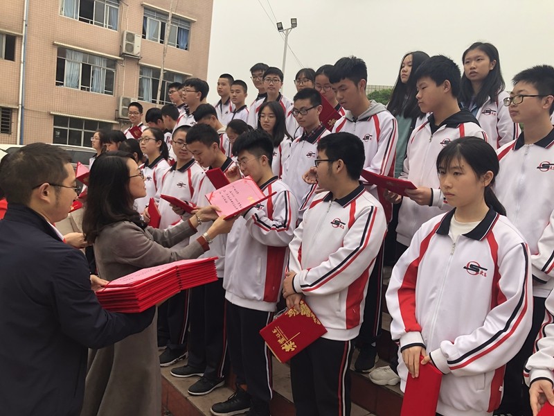 接下來,校長助理阮頓、年級主任丁莉萍、年級主任助理王鴻杰、魏彬四位老師為上學(xué)期期末在樂山市統(tǒng)考中進入重本行列的37位同學(xué)頒發(fā)了榮譽證書和500元現(xiàn)金獎勵。獎金總額共計18500元。