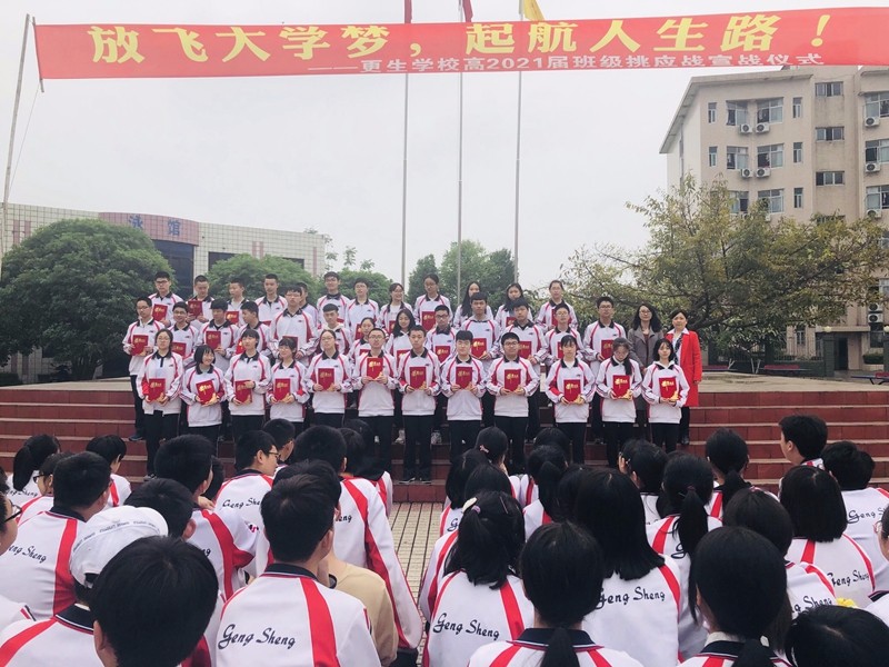 為了建設(shè)優(yōu)良學(xué)風(fēng),營造各班良好的學(xué)習(xí)氛圍,激發(fā)同學(xué)們積極拼搏的熱情,更生學(xué)校高一年級舉行了主題為“放飛大學(xué)夢,起航人生路”的班級挑應(yīng)戰(zhàn)宣戰(zhàn)儀式。