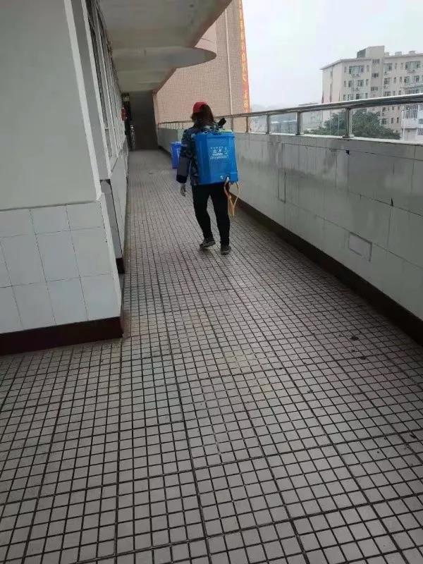 為避免師生感染新型冠狀病毒肺炎,遏制疫情的傳播擴(kuò)散蔓延,我校在寒假期間進(jìn)一步加強(qiáng)了安全防護(hù)措施,按需釆購防護(hù)藥品,對校園衛(wèi)生進(jìn)行全面清掃。從1月27日起,每天安排工作人員對教學(xué)樓、宿舍、食堂、操場、花園進(jìn)行徹底、全面、無死角消毒,創(chuàng)造衛(wèi)生、整潔、健康的校園環(huán)境。