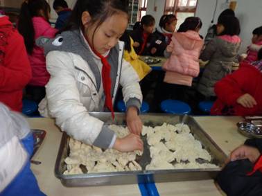 一年級(jí)學(xué)生學(xué)包餃子