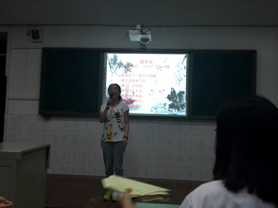 5月12日,繼高一·三班、八班、十一班《孔雀東南飛》課本劇表演活動之后,二班、十班利用晚自習(xí)時間在學(xué)校階梯教室舉辦了《唐宋詩詞》朗誦會。共有38名同學(xué)各自攜樂開嗓參加此次朗誦會。