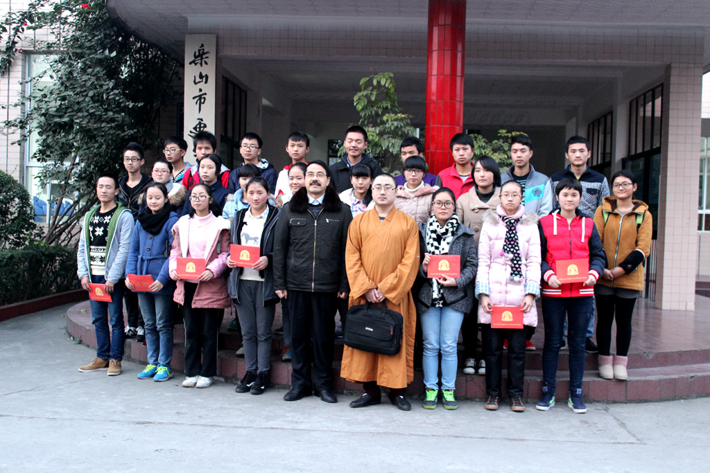 4年12月23日,樂(lè)山大佛凌云寺、烏尤寺慈善功德會(huì)宗觀大師一行2人走進(jìn)更生學(xué)校,為學(xué)校27名貧困生發(fā)放了愛(ài)心助學(xué)善款,共計(jì)32400元。在頒獎(jiǎng)儀式上阮平校長(zhǎng)致辭,阮校長(zhǎng)感謝慈善功德會(huì)多年來(lái)對(duì)學(xué)校貧困學(xué)子的資助,也號(hào)召同學(xué)們更加努力學(xué)習(xí),多做好事、善事來(lái)回報(bào)功德會(huì)及愛(ài)心人士。