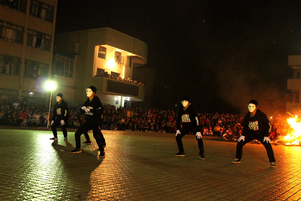 晚上7點(diǎn),篝火晚會(huì)在絢麗的煙花中中拉開帷幕。阮平校長首先致辭,獨(dú)特的配樂詩朗誦,博得全場陣陣掌聲。隨后全校各部門、各年級(jí)選出的20名火炬手,點(diǎn)燃會(huì)場三堆篝火,伴隨熊熊的篝火和同學(xué)們熱烈的歡呼聲,會(huì)場顯現(xiàn)一片喜慶景象。