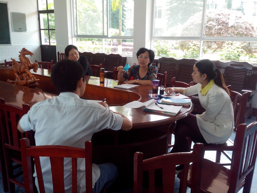 兩位老師每周星期五都會早早來校,利用半天的時間深入三位青年教師的課堂認真聽課,查找問題。接著利用中午休息時間組織評課,討論每位老師課堂中的優(yōu)點,不足之處和應(yīng)該注意的問題。最后還會結(jié)合教材分析下一周教學(xué)安排中要突破的重點和難點,并對可能遇到的問題進行詳細的答疑解惑……