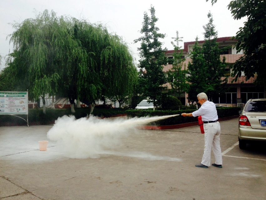 首先王主任為大家講解了滅火器的正確使用方法:(1)用力拉出安全插條;(2)一手握住滅火器把手,一手握緊噴管;(3)噴管對(duì)準(zhǔn)火源基部,擠壓把手,噴出白粉,撲滅火源?! ?/SPAN>